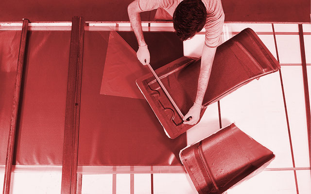Im Lay-up-Bereich verarbeiten wir Prepregs, RIM- und Vakuumpressmaterialien präzise und unter kontrollierten Bedingungen für höchste Bauteilqualität.